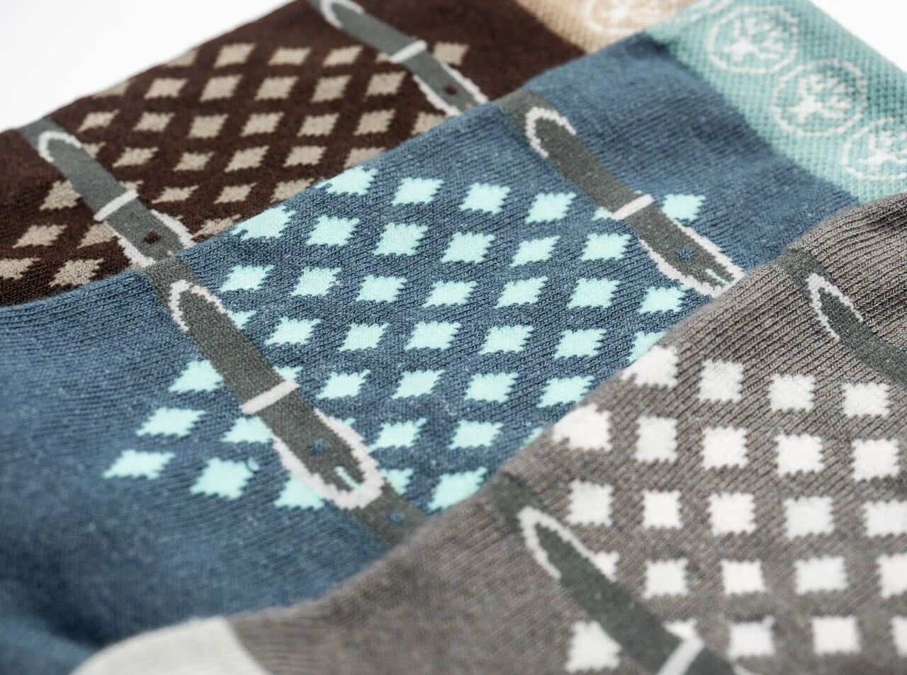 Böker-Socken mit dem berühmten Applegate-Fairbairn-Messer-Motiv für jeden Geheimagenten. Ob zu Hause, bei der Arbeit oder beim Feiern – mit der richtigen Ausrüstung meistern Sie diese täglichen Aufgaben mit Stil. Ein Set aus drei Paar Socken in Braun, Grau und Blau rundet jedes Outfit perfekt ab. Entworfen für alle Messerfans.