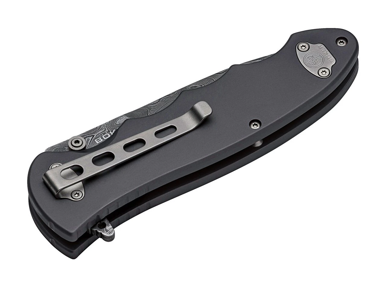 Die neue Version des Taschenmessers Boker Leopard-Damascus der dritten Generation verfügt über eine Flosse und einen Daumenstift. Aus Leoparden-Tankstahl wurden 300 Schichten Damaststahl in Kombination mit Werkzeug- und Lagerstahl geschmiedet. Das Ergebnis ist Leopard Damaskus mit unvergleichlichen Schneideigenschaften und einer Härte von 61 bis 63 HRC. Auf jeder Klinge sind drei verschiedene Stahlsorten deutlich sichtbar. Der auf CNC gefräste AlMgSi1-Aluminiumgriff ist dunkelgrau eloxiert und sieht in Kombination mit einem Einsatz aus 180 Schichten Damaskus wirklich luxuriös aus. Ein Clip ist selbstverständlich, der je nach Wunsch des Besitzers am Lager oder an der Ferse befestigt werden kann. Das Messer wird in einem Sammleretui mit Echtheitszertifikat und individueller Seriennummer geliefert.
