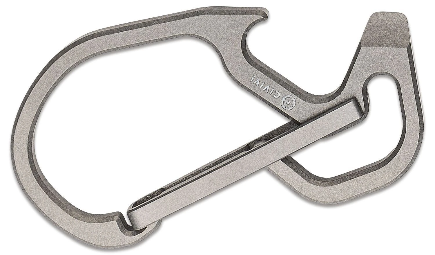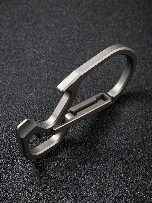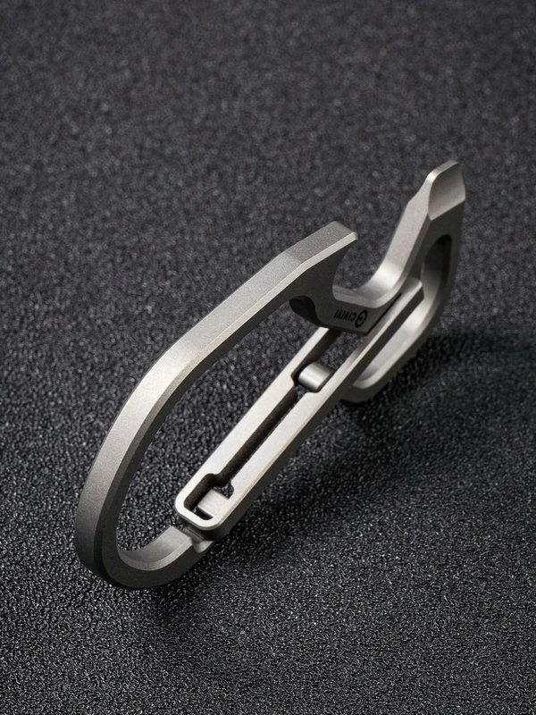 Der Karabiner enthält praktische Werkzeuge. Flaschenöffner, ob Bier oder Limonade, oder möglicherweise andere. Ein hervorragendes Hilfsmittel auf Reisen. Ein kleines Brecheisen als Ersatz für die Messerspitze zum Beispiel. An den Karabiner kann man zum Beispiel eine Taschenlampe in ein Zelt hängen, oder etwas, das man an einen Rucksack oder an einen Gürtel hängen kann. Dieser tolle Helfer ist komplett aus Titan gefertigt. Der Karabiner ist in grau gehalten.