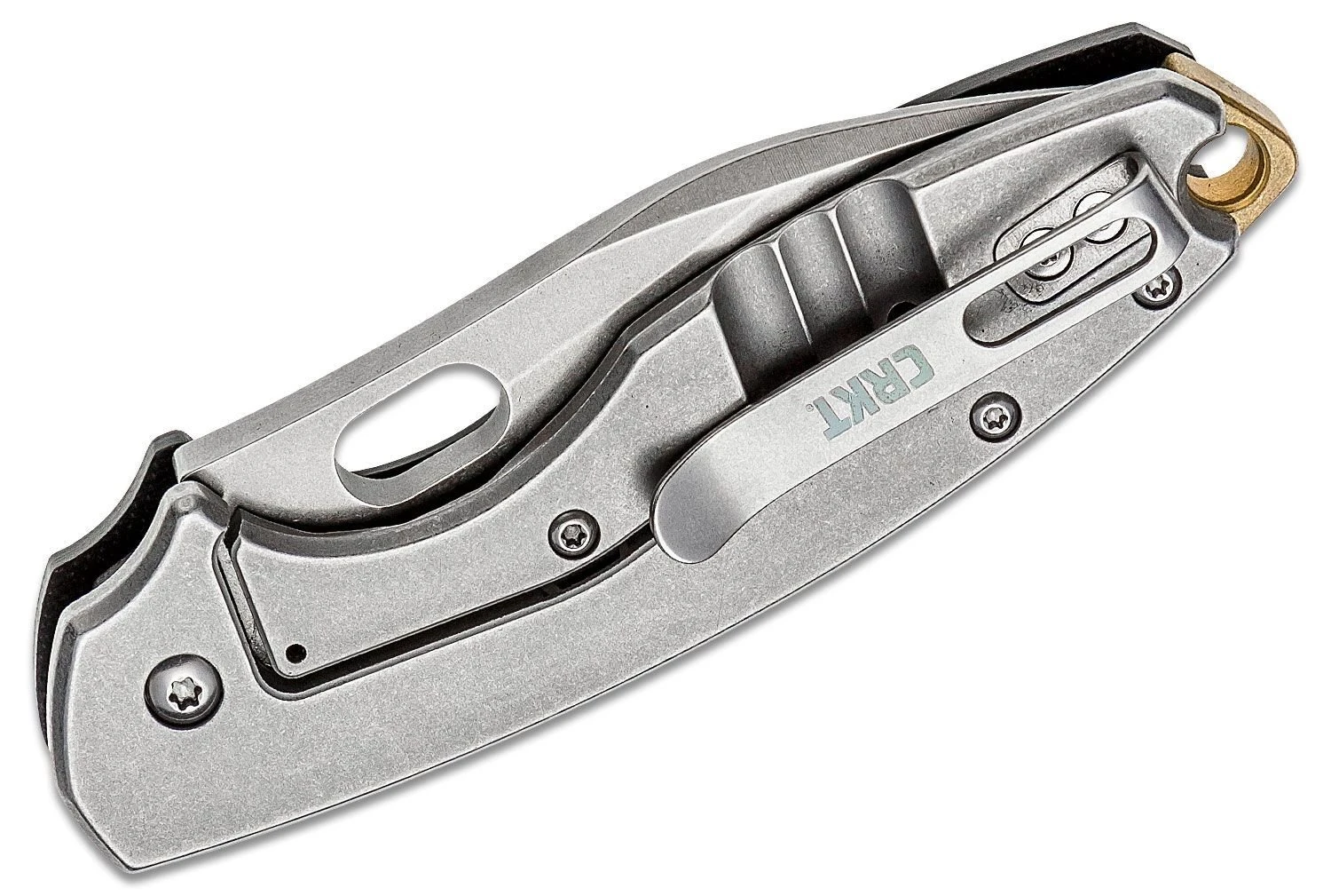 Die kugelgelagerte Klinge besteht aus D2-Stahl. Es öffnet sich mit einer Hand durch die Öffnung an der Klinge. Das geöffnete Messer wird durch die Frame-Lock-Sicherung gesichert. Die Vorderseite des Griffs besteht aus schwarzem G 10-Material und hat eine Fangriemenöse, während der Stahldorn auch zum Brechen von Glas verwendet werden kann. Die Rückseite des Griffs ist aus Stahl und hat einen Hosenclip, der ein diskretes Tragen ermöglicht.
