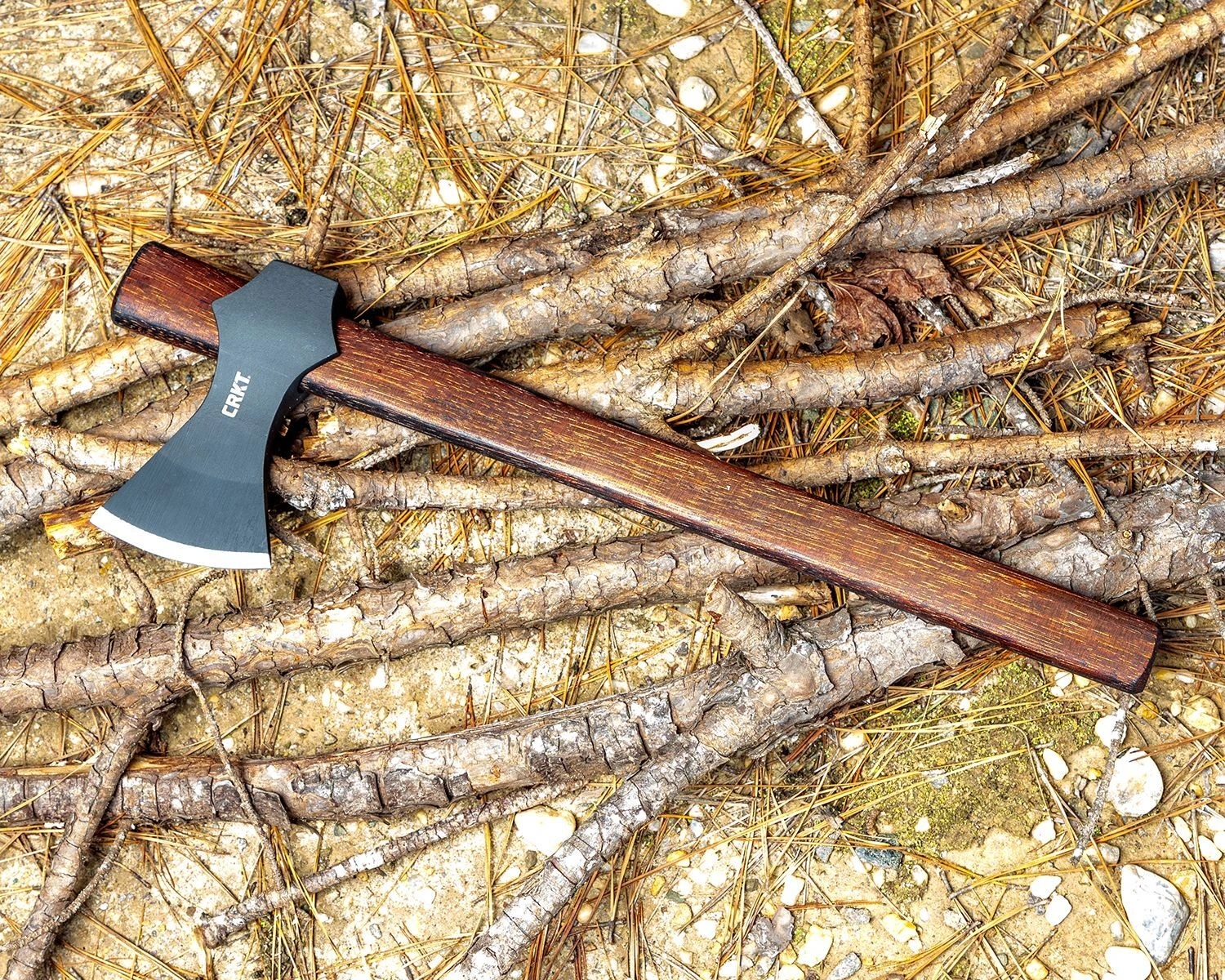 Der Axtkopf ist aus hochwertigem 1055er Kohlenstoffstahl gefertigt, die hintere flache Seite ist ideal zum Einschlagen von Nägeln oder Zeltheringen. Der einzelne Stiel ist aus Hickory Tennessee-Holz gefertigt.