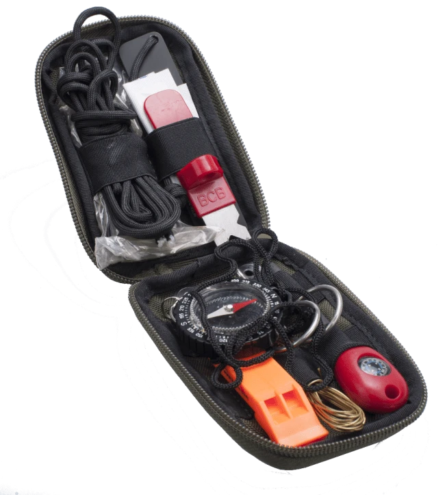 Das Extrema Ratio KIT SELVANS GREEN SHEATH BLACK ist ein militärisches Überlebenskit für den zivilen Markt. Neben dem Messer enthält das Set auch einen Kompass, eine Pfeife, Wasserreinigungstabletten, Kupferdraht, Paracord, LED-Licht, eine Taschensäge für Ketten, einen Feuerstein und einen Schlagbolzen aus Stahl. In einer grünen Nylonhülle mit MOLLE-Kompatibilität.