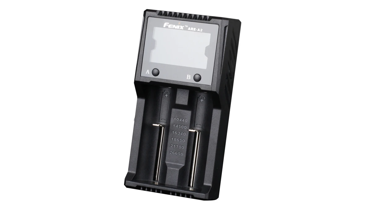Universelles Ladegerät Fenix ARE-A2 (Li-Ion, NiMH) mit Ladealgorithmus CC / CV mit zwei unabhängigen Ladekanälen. Es ist für 3,7 V / 3,6 V Li-Ionen- und NiMH-Batterien ausgelegt. Es ist möglich, Batterien unterschiedlicher Größe, Kapazität und chemischer Zusammensetzung gleichzeitig zu laden. Es erkennt automatisch den eingelegten Akku und wählt den optimalen Ladealgorithmus aus.