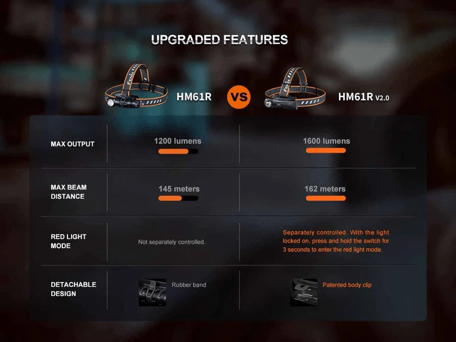 Die Fenix HM61R V2.0 Stirnlampe wurde für eine noch bessere Leistung aufgerüstet. Der große Schalter, der auch mit Handschuhen bedient werden kann, ermöglicht das schnelle Umschalten zwischen fünf Helligkeitsstufen, einschließlich eines Turbomodus mit einer maximalen Helligkeit von 1600. Durch doppeltes Antippen des Schalters lassen sich die drei Rotlichtmodi unabhängig voneinander aufrufen – kein Umschalten von Weiß auf Rot mehr. Die Fenix HM61R V2.0 ist auch eine großartige Handlampe, wenn Sie sie von der Stirnlampe abnehmen, die einen magnetischen Sockel und einen Gürtelclip für zusätzlichen Freihandbetrieb enthält. Diese Taschenlampe wird von der mitgelieferten Hochleistungsbatterie 18650 betrieben und kann im Energiesparmodus bis zu 300 Stunden lang Licht abgeben. Magnetisches Aufladen, eine Batterieladeanzeige und die Wasser- und Staubdichtigkeit nach IP68 runden die Eigenschaften ab, die diese Mehrzweckleuchte zu einem perfekten Werkzeug für die freihändige Beleuchtung machen.
