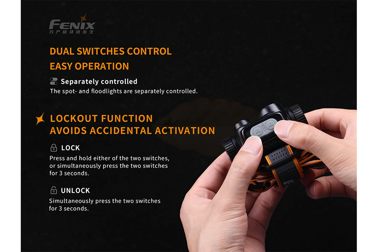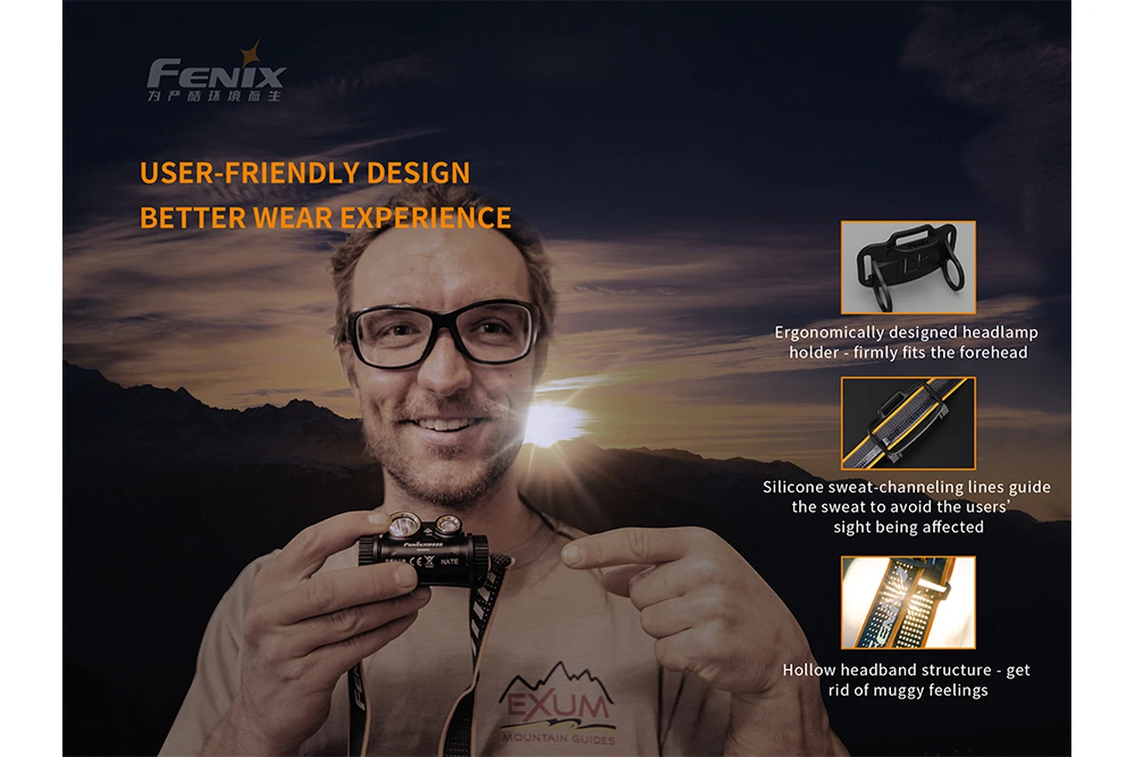 Inklusive Fenix 18650 3400 mAh Lithium-Ionen-Akku, Kopfbänder, USB-C-Ladekabel, Ersatz-O-Ring.
