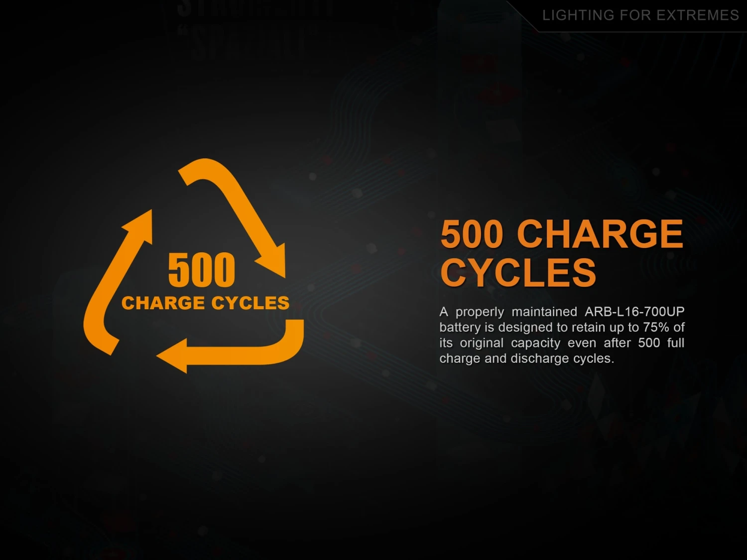 Wiederaufladbare Batterie Fenix ARB-L16-700UP (RCR123A, 16340) mit eigenem Mikro-USB-Ladeanschluss. Es kann durch Anschluss eines Kabels an den Micro-USB-Anschluss (z. B. von einem Computer- oder Handy-Ladegerät), in einem herkömmlichen Ladegerät sowie in wiederaufladbaren Stirn- und Taschenlampen aufgeladen werden. Im Vergleich zu den Batterien ARB-L16-700U und ARB-L16-700 ist sie für einen höheren Entladestrom (bis zu 2,5 A) ausgelegt. Sie eignet sich daher besonders für Geräte mit höherer Stromaufnahme, z.B. Fenix E16 und E18R Taschenlampen. Die Batterien haben keinen Memory-Effekt und die Selbstentladung ist minimal.