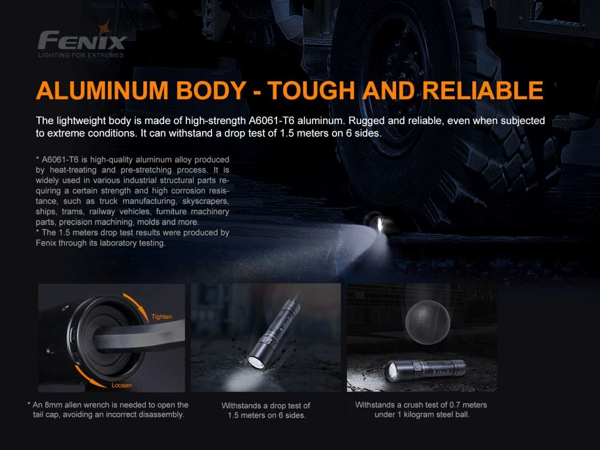 Das Gehäuse der Taschenlampe besteht aus Aluminium aus der Luft- und Raumfahrt mit hoher Haltbarkeit und Schlagfestigkeit. Die Taschenlampe ist in erster Linie für Feuerwehrleute und Rettungskräfte konzipiert, sie eignet sich auch als Arbeitsleuchte für Industrie- und Baustellen mit explosionsfähigen Stäuben und Gasen. Dazu gehören chemische Anlagen, Raffinerien, Textilfabriken, Papierfabriken, Mühlen, metallurgische Anlagen, Kraftwerke usw.