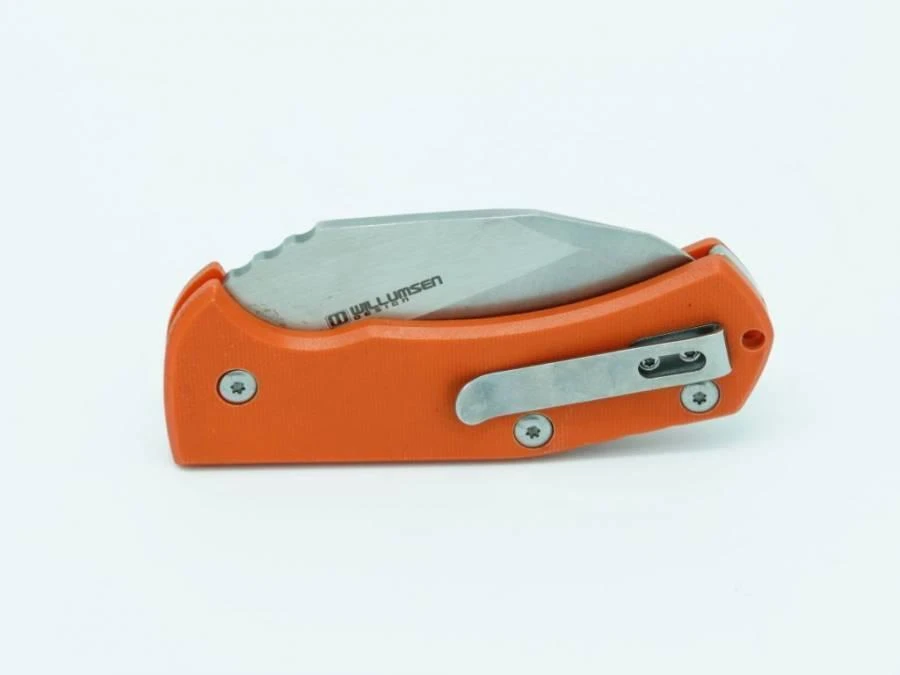 Die Klinge aus Messerstahl 440C öffnet sich mit einer Kerbe in der Klinge und wird in offener Position von einem starken Slipjoint-Federmechanismus gehalten. Der Griff ist aus dem strapazierfähigen Material G10 gefertigt. Das Messer ist mit einem Clip für das Tragen in der Tasche ausgestattet.