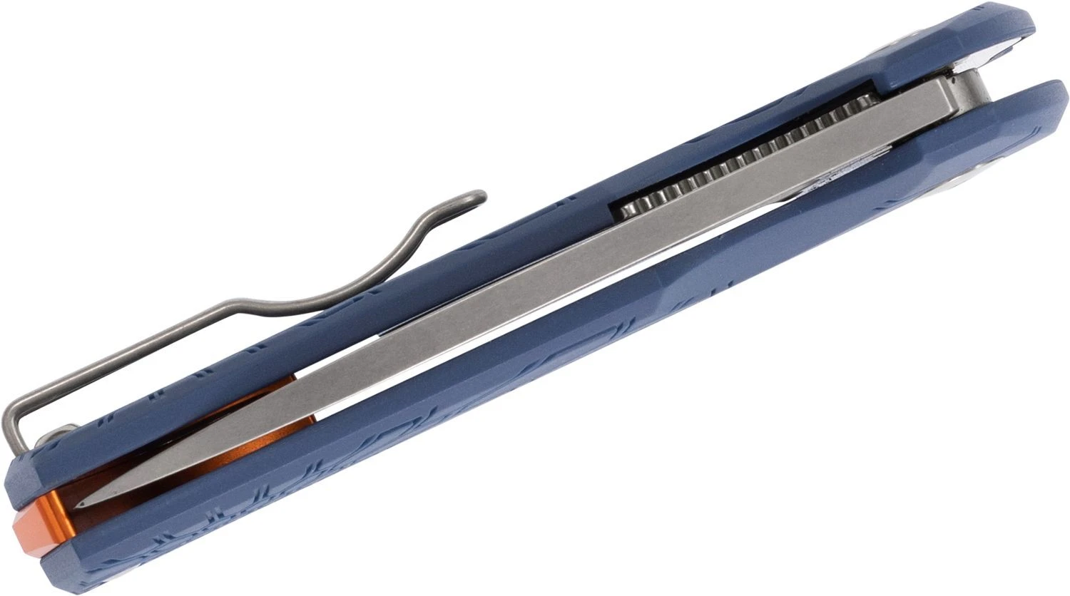 Das Fox Knives Core Blue von Jesper Voxnæs ist ein robustes Allround-Messer für alle Outdoor-, Dienstleistungs- und Jagdaktivitäten. Es ist ein Klappmesser mit einer Klinge aus N690 Stahl mit glatter Schneide. Es lässt sich mit dem Daumen oder dem Flipper öffnen, gesichert durch eine Linerlock-Sicherung. Der Griff ist aus blauem, rutschfestem FRN-Material mit einem Lanyard-Loch und einer orangefarbenen, verstärkenden Einlage auf der Rückseite des Griffs. Das Messer hat einen Taschenclip.