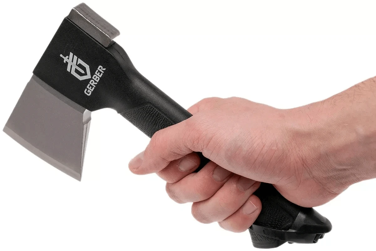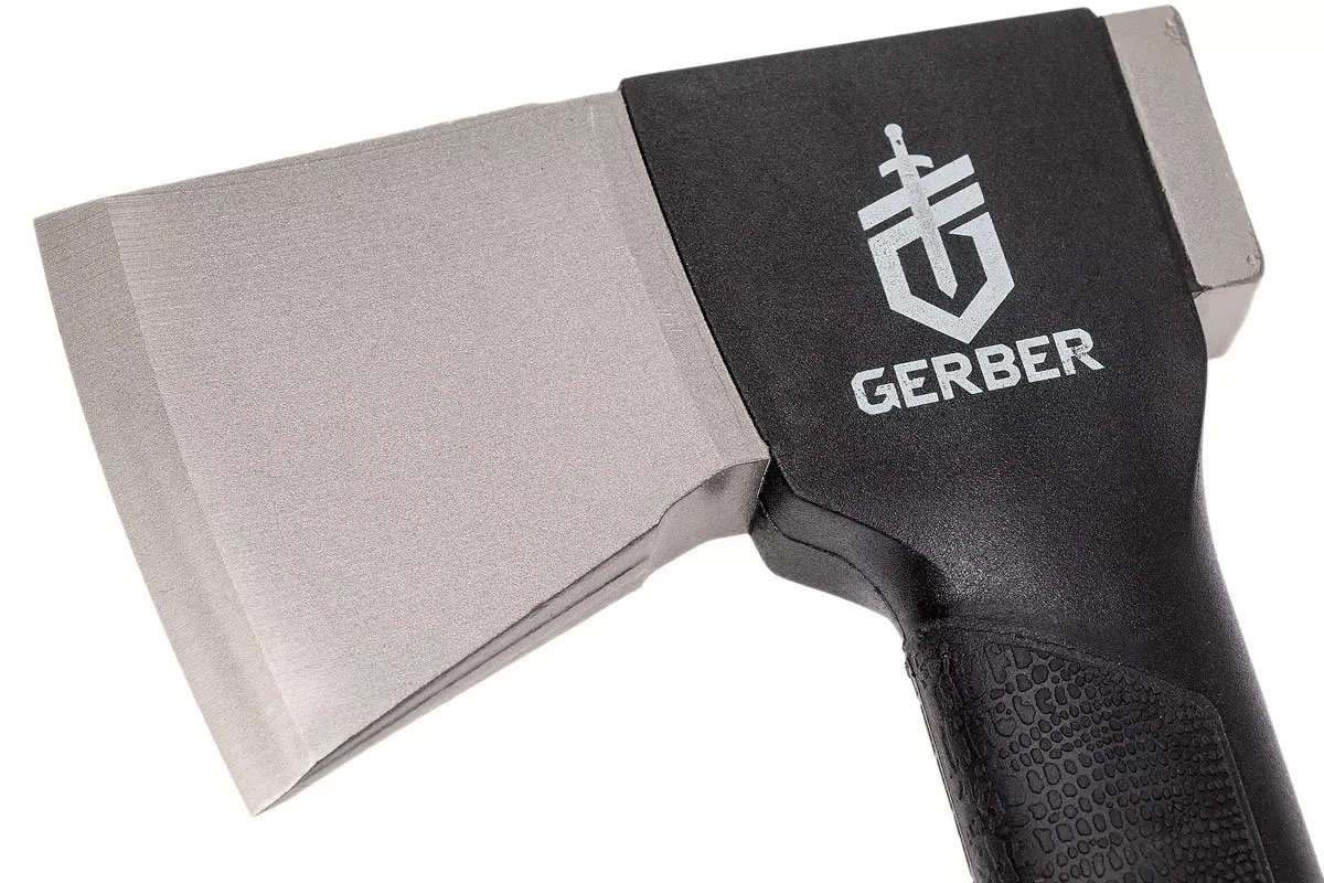 Das Design der Axt ähnelt dem Design der Äxte von Fiskars, was nicht verwunderlich ist, da Gerber der Eigentümer von Fiskars ist. Dies ermöglicht die Verwendung eines austauschbaren Axtkopfes. Der Axtstiel ist integriert und aus FRN gefertigt, sodass er sich nicht lösen kann. Der ikonische Gerber-Gator-Griff sorgt für einen guten Halt der Axt.