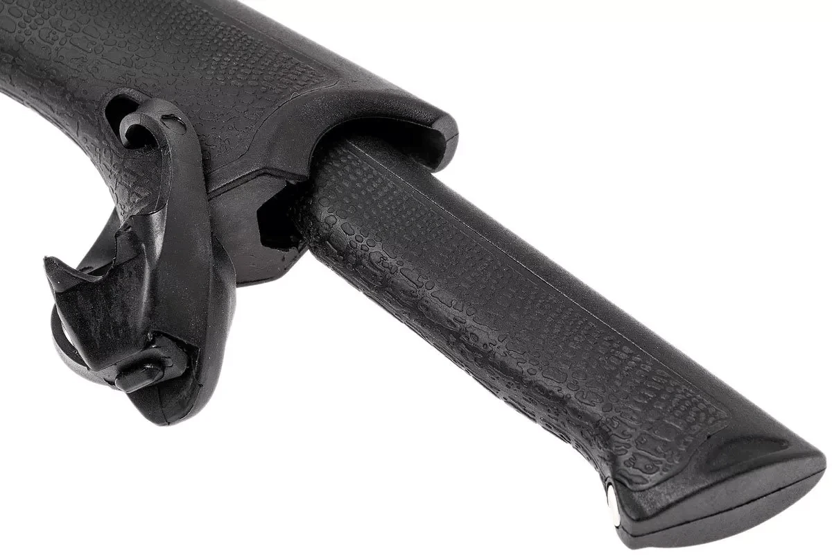 Der Griff wurde mit einem kleinen feststehenden Messer ergänzt. Dieses Messer hat eine 7,2 cm lange Klinge und eine Gesamtlänge von 17,8 cm. Ein Magnet und ein zusätzlicher Gummihalter halten das Messer zuverlässig an Ort und Stelle.