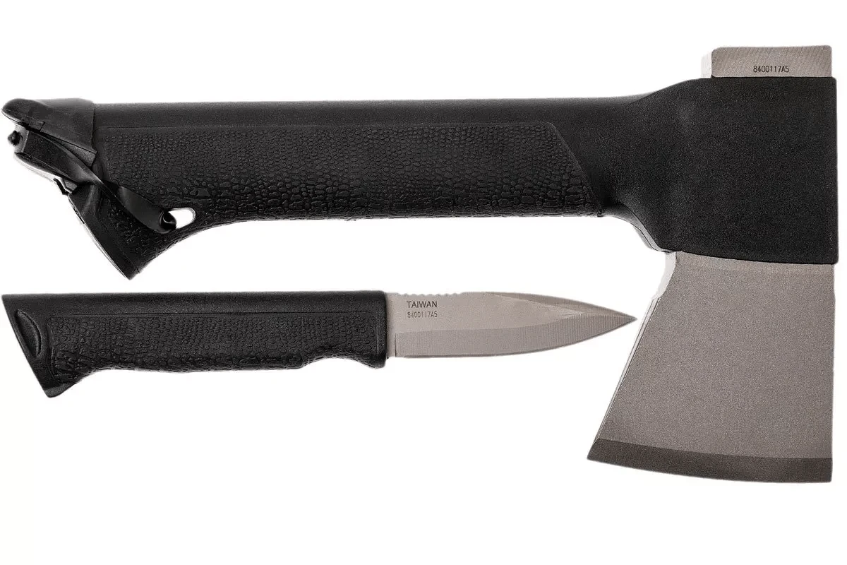 Die Gerber Gator Combo Axe ist eine kompakte Axt, die für Bushcraft- oder Jagdaktivitäten geeignet ist und über eine integrierte feststehende Klinge verfügt, die im Axtgriff untergebracht ist.