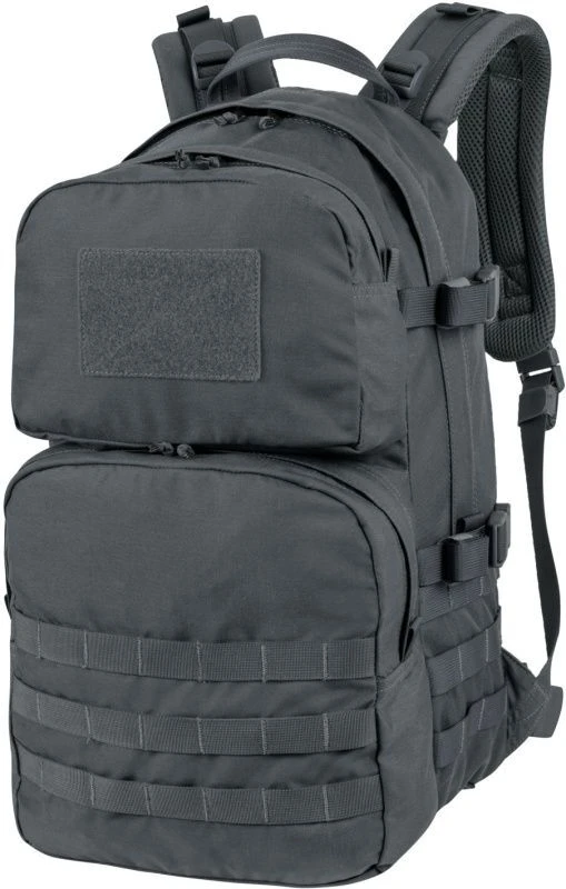 An der Vorderseite und den Seiten befindet sich ein MOLLE-System. An der oberen Tasche befindet sich ein großer Klettverschluss. Der Rucksack hat einen Hüftgurt, gepolsterte Schultergurte und einen Brustgurt, die alle mit hochwertigen Kunststoffschnallen ausgestattet sind. An der Oberseite des Rucksacks befindet sich eine Schlaufe zum Tragen in der Hand.