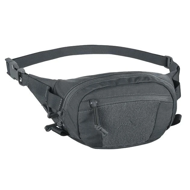 Possum ist eine kleine, kompakte Hüftentasche mit zwei kleineren und einer großen Reißverschlusstasche, einer Klettverschlussblende, einem abnehmbaren Gürtel, einem MOLLE-System und einer internen Netztasche mit Reißverschluss.