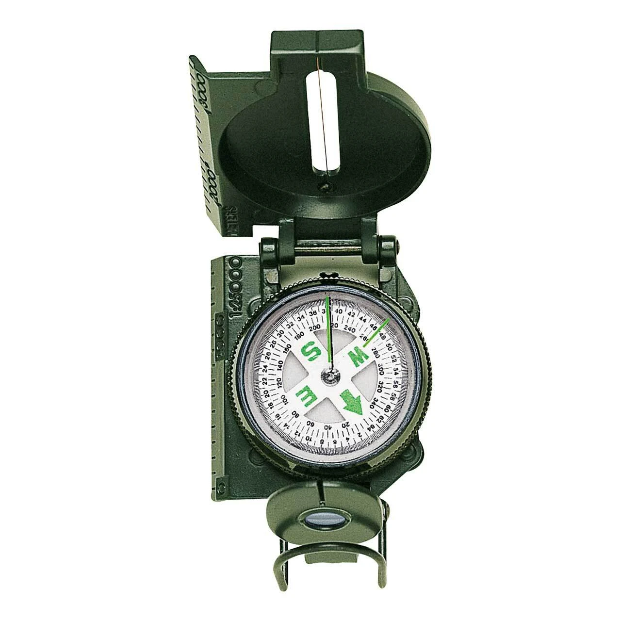 Der Herbertz Ranger Touristenkompass hat eine ölgefüllte transparente Kapsel und eine robuste Metallabdeckung. Es enthält eine Kontaktkante im Maßstab 1: 25000, eine Lupe und eine Drehskala. 360-Grad-Teilung / 64 Linien.