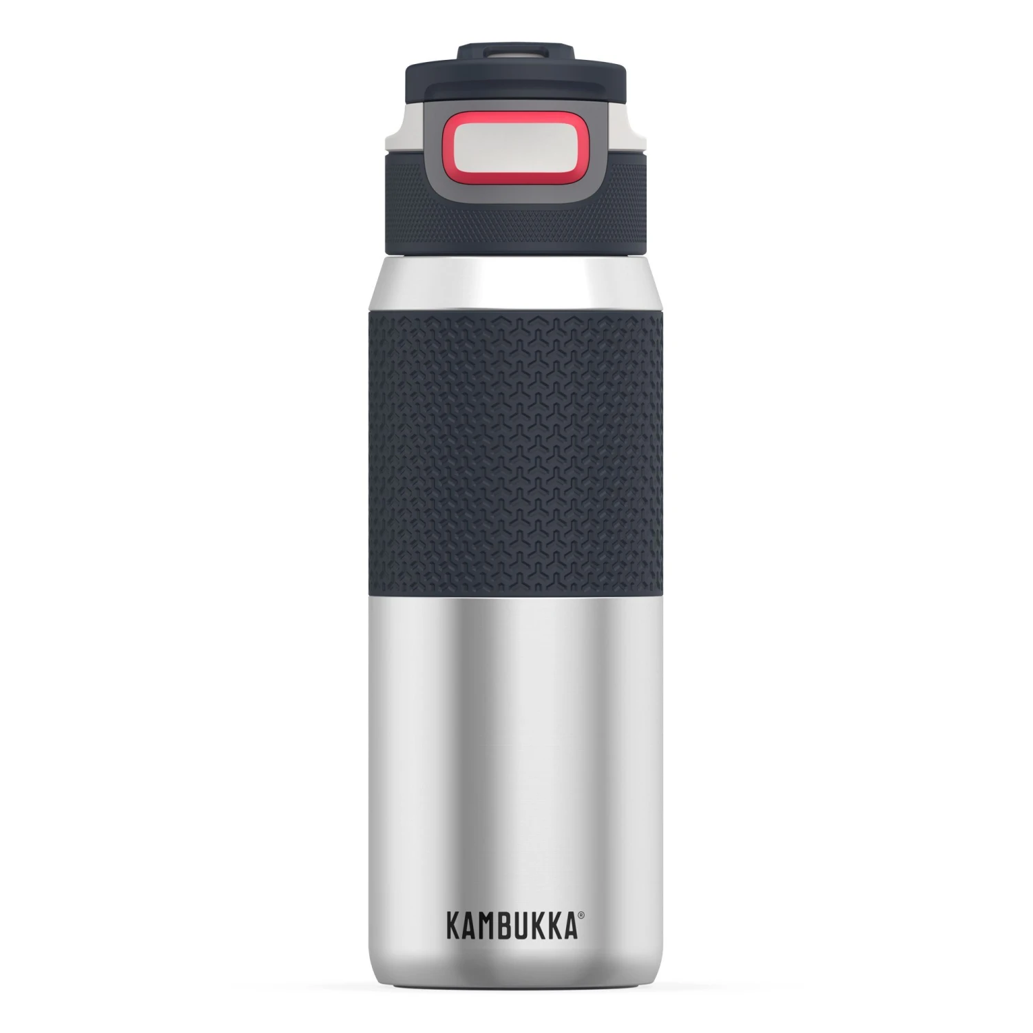 Der Elton Insulated Stainless Steel 750 ml Kambukka besteht aus vakuumisoliertem 18/8-Edelstahl mit einer Stahloberfläche und einer Silikonhülle, die verhindert, dass er Ihnen aus der Hand rutscht. Der Deckel ist universell 3 in 1 (Druckposition, immer offen, geschlossen). Reinigung mit SnapClean-Technologie, spülmaschinengeeignet, BPA-frei, resistent gegen auslaufende Flüssigkeiten. Es hält Getränke 21 Stunden lang kalt.