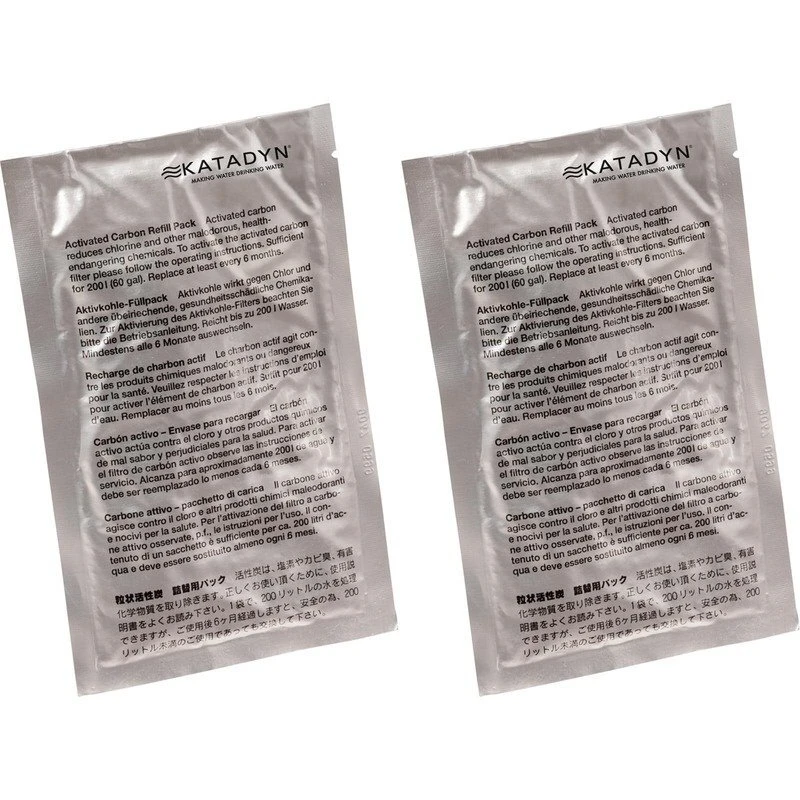 Katadyn Vario Carbon Replacement Pack 2-teiliges Set mit Ersatzaktivkohle für den Katadyn Vario Filter. Wirkt der Chemie im Wasser entgegen, verbessert den Geschmack des Wassers.