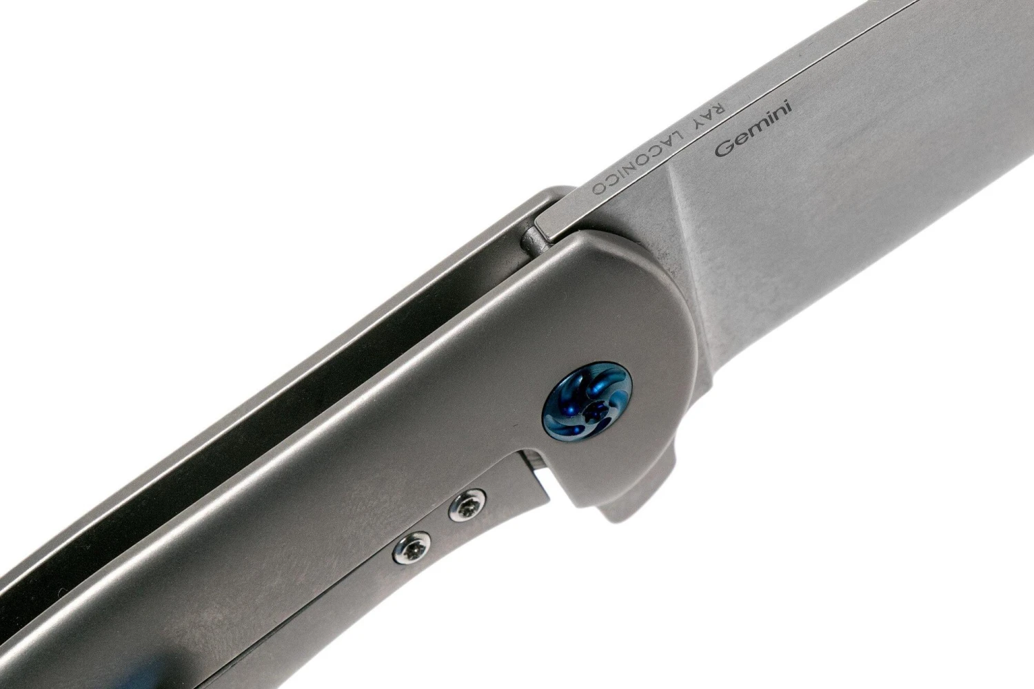 Die Klinge aus hochwertigem CPM-S35VN-Stahl lässt sich mit einem Flipper öffnen und wird durch einen Framelock-Verschluss in geöffneter Position gehalten. Der Griff ist aus Titan gefertigt. Am Ende des Griffs befindet sich ein Loch für ein Schlüsselband. Das Messer ist mit einem Clip zum Tragen in einer Tasche ausgestattet.