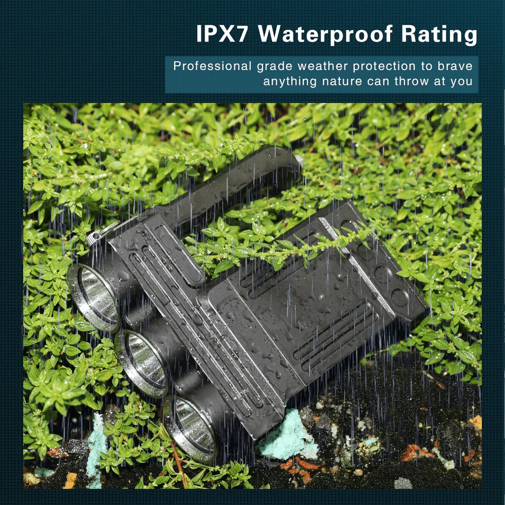 Dieser Reflektor ist mit mehreren Sicherheitsvorkehrungen ausgestattet, einschließlich eines thermischen Schutzes für die LED und Komponenten, der einen sicheren und zuverlässigen Betriebsmodus gewährleistet. Es verfügt außerdem über eine Schaltersperrfunktion, die ein versehentliches Aktivieren des Reflektors verhindert. Es ist bis zu 1 Meter stoßfest und verfügt über die Wasserdichtigkeitsklasse IPX7.