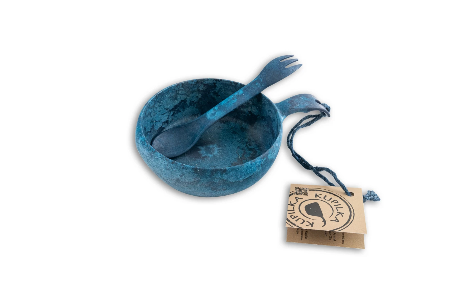 Praktisches Set aus kleiner Schüssel und Spork (Kombination aus Löffel und Gabel) für Ausflüge, Wanderungen oder die Arbeit. Es ist aus dem Material Kareline® hergestellt. Dieses Material ist einzigartig durch die Kombination von Kiefernholzfasern und thermoplastischem Kunststoff im Verhältnis 50:50. Es kombiniert die Vorteile von Holz und Kunststoff. Es ist unzerbrechlich, verträgt Temperaturen von -30°C bis +110°C, ist stark und leicht. Außerdem nimmt es keine Lebensmittelgerüche auf, ist leicht zu reinigen und nicht so feuchtigkeitsempfindlich wie herkömmliches Holzgeschirr. Die Verpackung besteht aus recyceltem Karton.