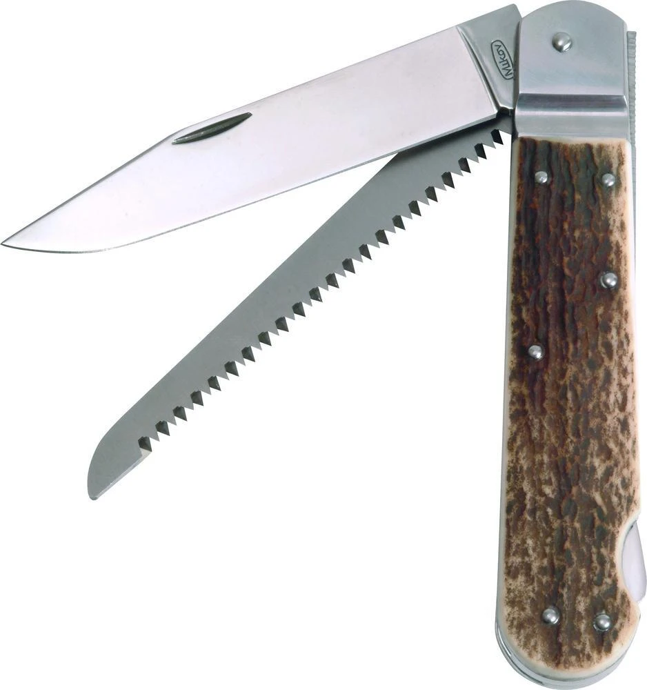 Das Jagdklappmesser Mikov Hunter 230-XP-2 KP wurde nach Kundenwunsch entwickelt und basiert auf dem Messer FIXIR – Hunter ist 1/3 größer. Die Klinge besteht aus hochwertigem 440 A Stahl mit einer Backlock-Sicherung. Der Griff besteht aus echtem Hirschgeweih. Es enthält auch eine Säge mit einer Linerlock-Sicherheit. Kommt in einer Ledertasche.