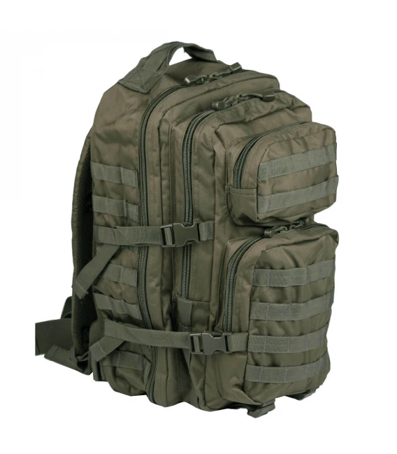 Großer Vierkammerrucksack Mil-Tec US Assault PACK LARGE in Olivfarbe mit einem Fassungsvermögen von 36 Litern. PVC-beschichteter Polyesterträger mit Polyesterfutter und EVA-Schaumstoffpolsterung.