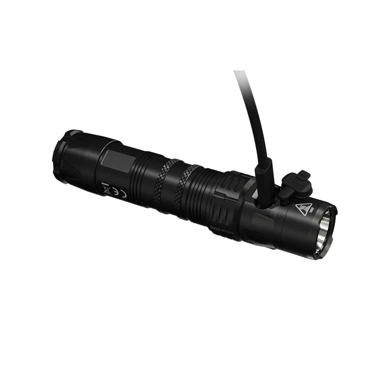 MH12SE wird von einer 18650 Li-Ionen-Batterie oder zwei CR123A-Lithiumbatterien angetrieben (beide Batterien sind inbegriffen). Die Taschenlampe hat eine lange Betriebszeit und kann mit dem geschlossenen USB-C-Ladekabel aufgeladen werden.