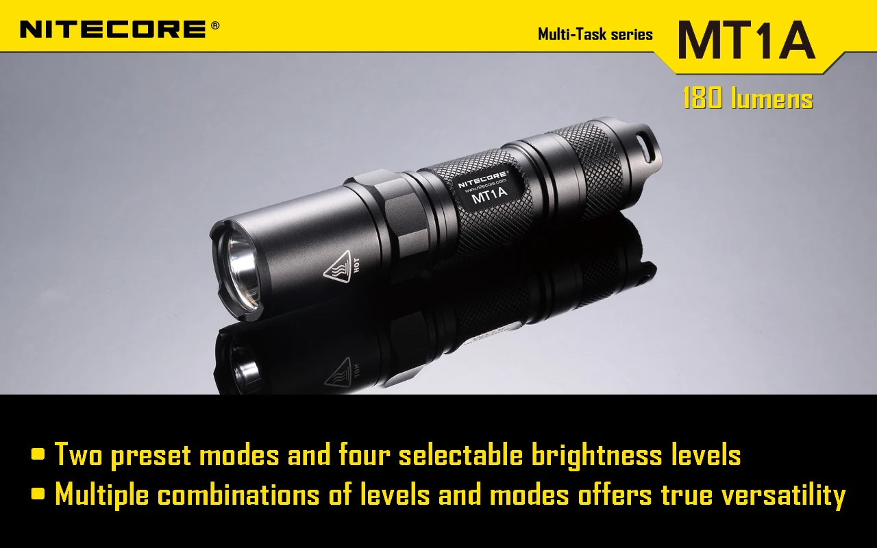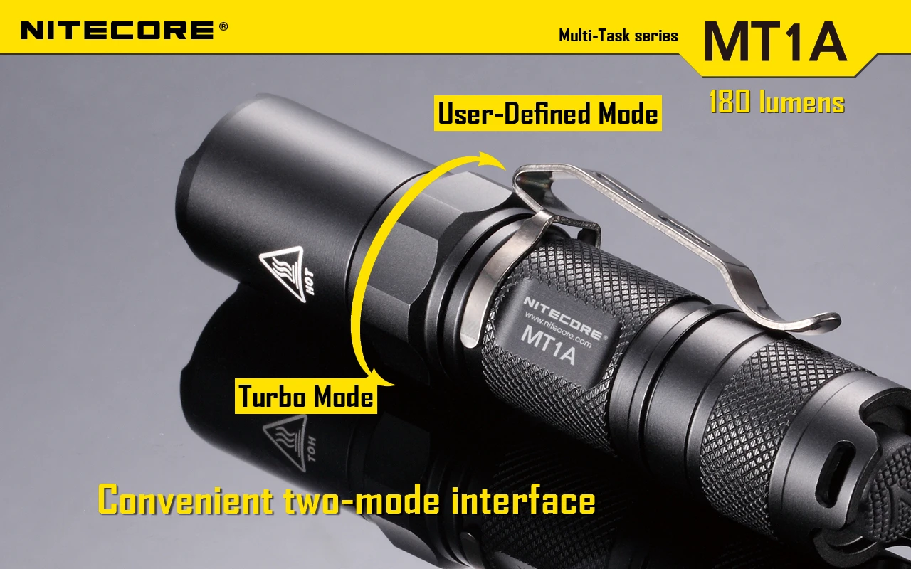 Nitecore MT1A ist ein zuverlässiger und leistungsstarker Leuchten, der ausreichende Beleuchtung und praktische Funktionen für Ihre täglichen Bedürfnisse bietet. Das einfache Kontroll- und kompakte Design macht es zu einem idealen Begleiter für Ihre Abenteuer, taktische Missionen.