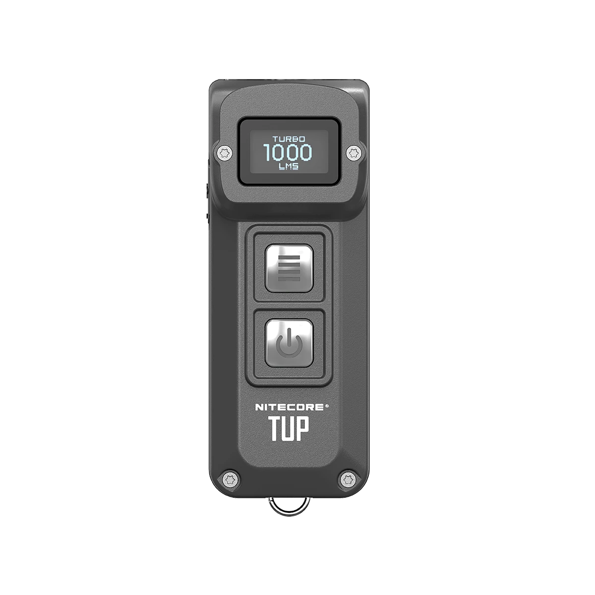 Nitecore Tup ist auch mit einem OLED -Display ausgestattet, das die Leuchteninformationen wie Batterieleistung, den Beleuchtungsmodus und vieles mehr zeigt. Das Display ist klar und selbst bei niedriger Beleuchtung leicht zu lesen.