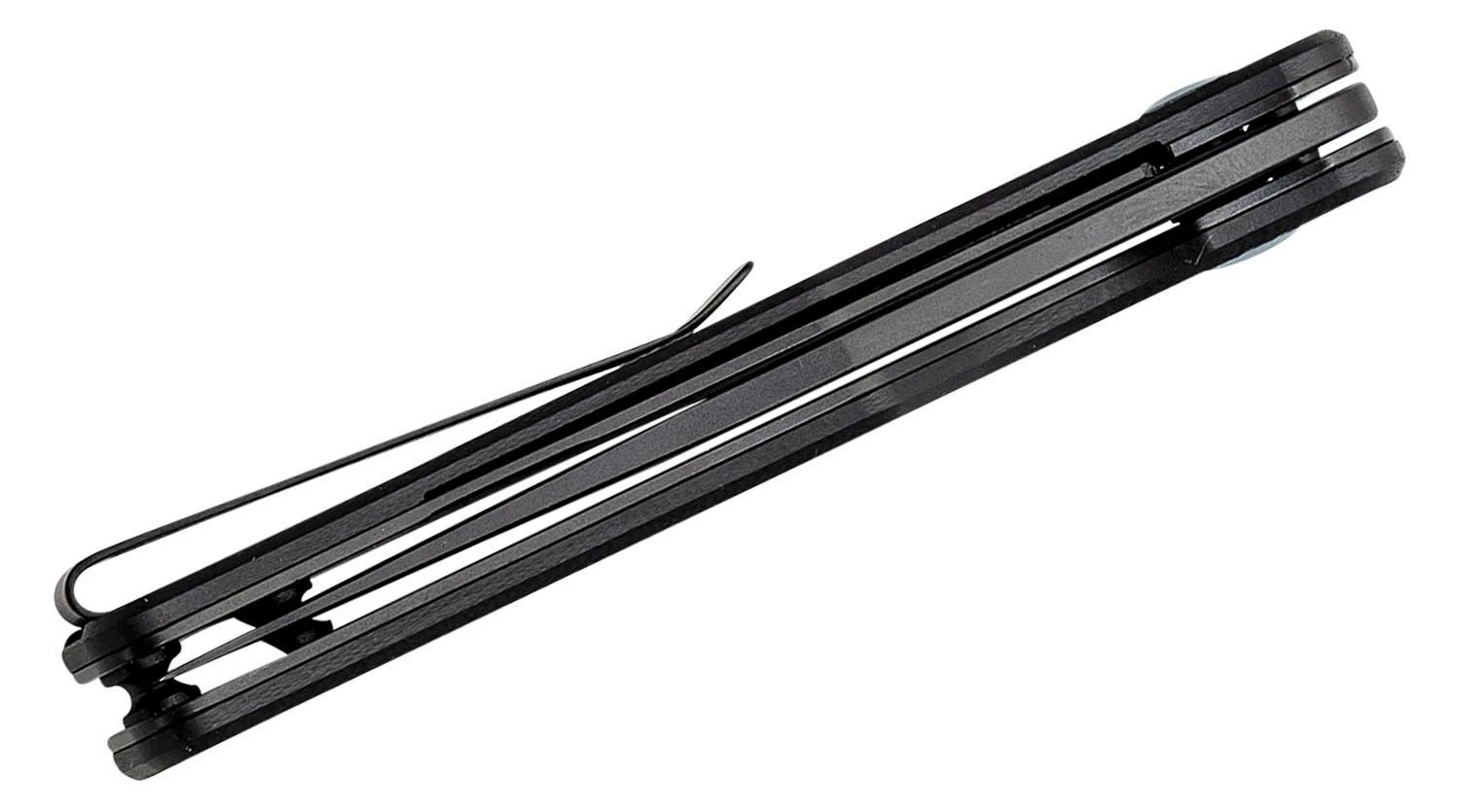 Die aus D2-Werkzeugstahl gefertigte Klinge lässt sich mit einem Flipper öffnen und wird durch einen Linerlock-Verschluss in der offenen Position gehalten. Der Griff ist aus strapazierfähigem G10-Material gefertigt. Das Messer ist mit einem Clip zum Tragen in einer Tasche ausgestattet.