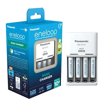 Ladegerät + wiederaufladbare Batterien Panasonic Eneloop EKO BQ-CC51 + 4x R03/AAA in neuer umweltfreundlicher Verpackung.