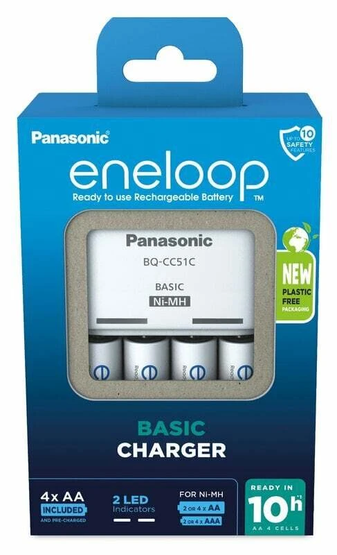 Panasonic Eneloop EKO BQ-CC51 Ladegerät + 4x R6/AA Akkus in einer neuen umweltfreundlichen Verpackung.