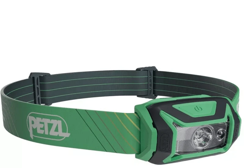 Kompakte wiederaufladbare Stirnlampe Petzl TIKKA Core Lamp Green mit wiederaufladbarem Akku, geeignet für Outdoor-Aktivitäten wie Wandern, Camping oder Reisen. Mit einer Lichtleistung von 450 lm und einer Reichweite von 75 Metern.