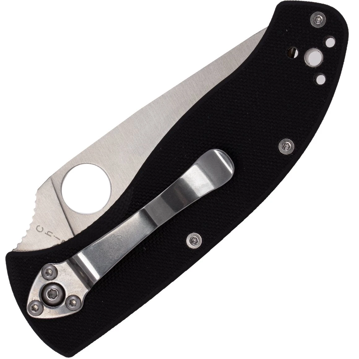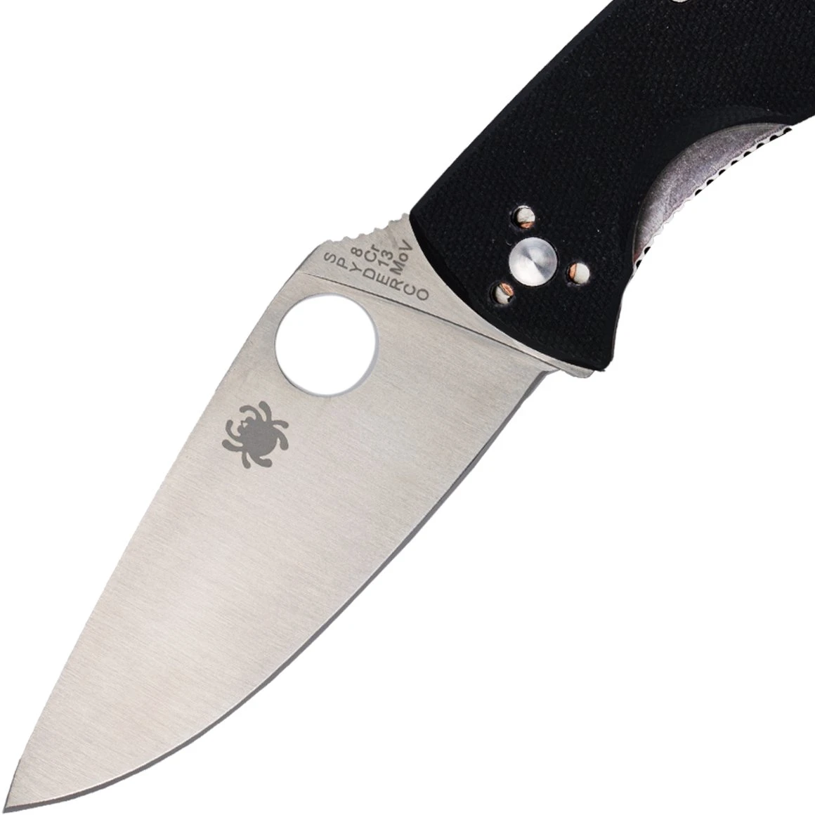 Die 8Cr13Mov Edelstahlklinge ist belaubt und von hinten bis zur Schneide flach geschliffen, um maximale Schneidleistung zu erzielen. Die Form der Klinge in Kombination mit dem übergroßen runden Loch Spyderco ermöglicht ein einfaches und bequemes Öffnen mit dem Daumen. Die Blattsicherung ist ein Liner Lock. Der Griff hat einen Clip mit vier Positionen an der Tasche, was bedeutet, dass Sie vier Platzierungsoptionen haben. Das Messer hat ein Loch für die Schnur.