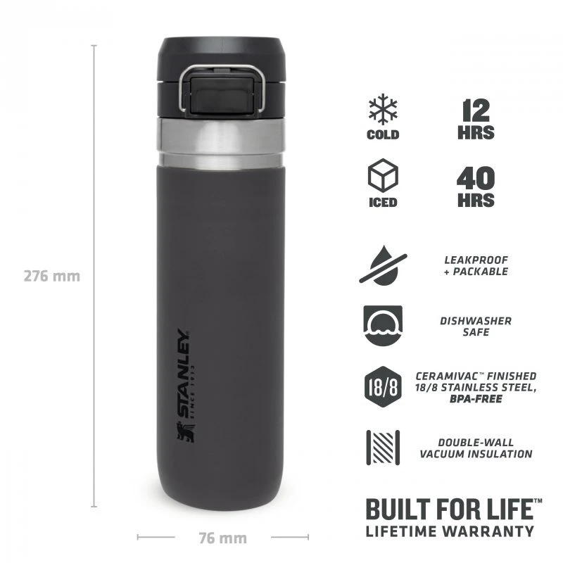 STANLEY Go Flip ist eine Vakuum-Thermoflasche für jede Gelegenheit. Das moderne, schlanke Design eignet sich für das Büro oder die Stadt, aber auch draußen im Auto, auf der Straße oder beim Wandern. Die Metallschlaufe ermöglicht ein einfaches Tragen in der Hand sowie eine schnelle Befestigung an einem Rucksack.