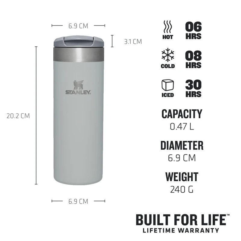 Leicht, kompakt, attraktiv, anmutig. All das bietet der Thermobecher AeroLight von STANLEY 1913. Die STANLEY Transit-Produktreihe mit AeroLight-Technologie wurde so konzipiert, dass sie leicht ist, egal ob auf Reisen oder beim täglichen Weg zur Schule oder zur Arbeit. Thermobecher aus der Transit-Serie sind 33 % leichter als herkömmliche STANLEY-Edelstahl-Thermobecher. Die Transit-Reihe wird mit der STANLEY AeroLight-Technologie hergestellt, die aus einer doppelten Vakuumisolierung aus Walzstahl besteht, die das Gewicht deutlich reduziert – ohne die Fähigkeit des Bechers zu beeinträchtigen, den Inhalt auf der gewünschten Temperatur zu halten, egal ob heiß oder kalt, und ohne die Lebensdauer einzuschränken. Diese vollständig wasserdichten und 100 % versiegelten Thermobecher bieten ein minimalistisches Design, einen flachen Deckel und sind kompakt und leicht zu transportieren. Sie passen auch bequem in Getränkehalter im Auto. Dieser Thermobecher mit niedrigem Profil ist ein Drittel leichter als unsere normalen Thermobecher aus Edelstahl mit ähnlichem Volumen. Das Geheimnis liegt in der federleichten STANLEY AeroLight-Technologie, die jedoch weder die Haltbarkeit noch die Wärmeleistung beeinträchtigt. Der Inhalt bleibt von dem Moment an, in dem Sie das Haus verlassen, bis zu dem Zeitpunkt, an dem Sie Ihr Abenteuer oder den täglichen Weg zur Arbeit beenden, kalt oder heiß. Der Deckel mit Trinkloch schließt dicht, um einen wasserdichten und vollständig versiegelten Transport in einer Tasche oder einem Rucksack zu gewährleisten.