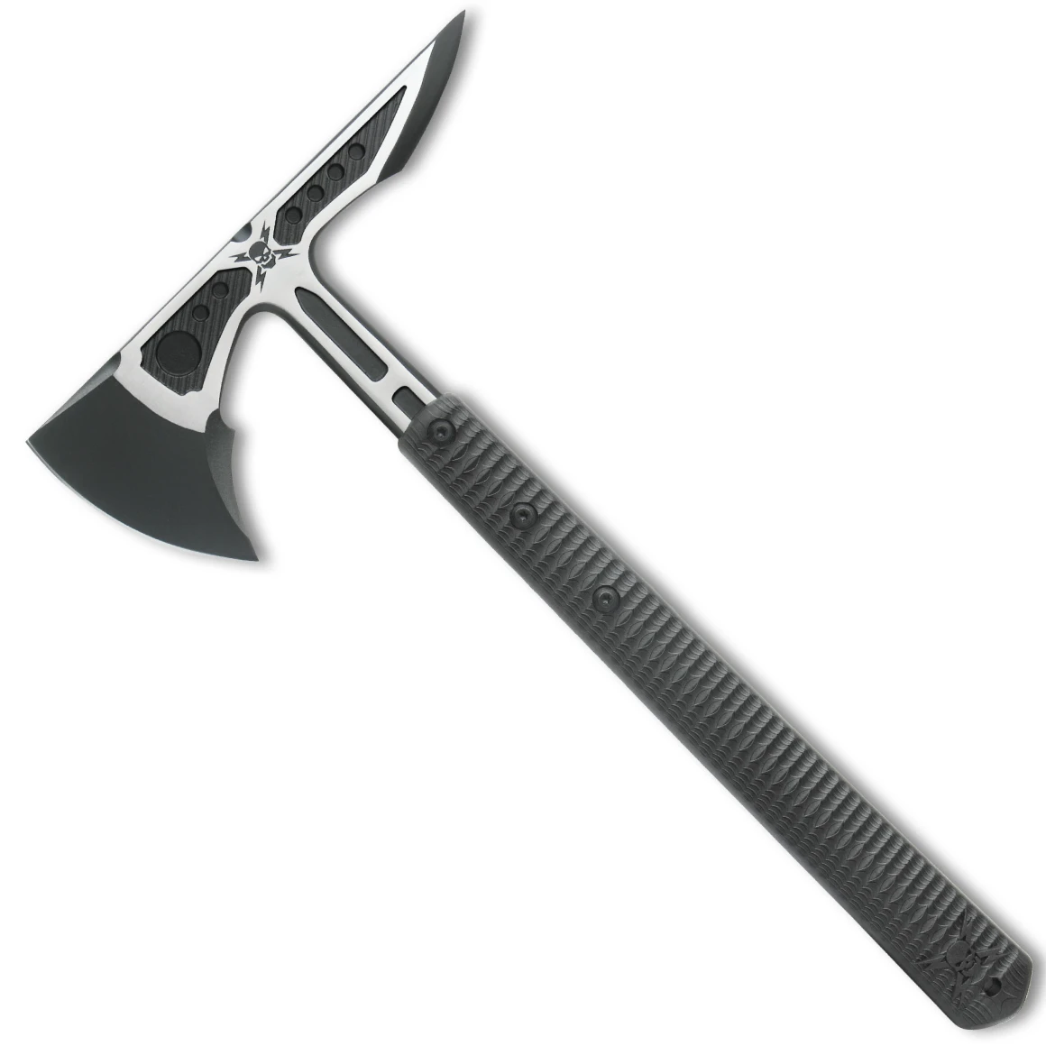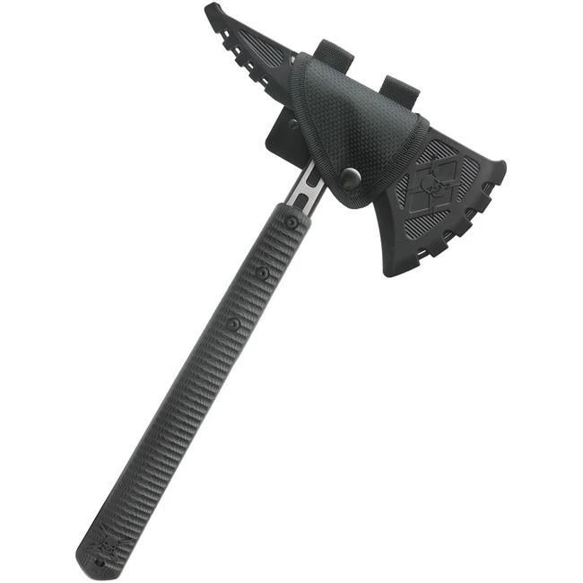 United Cutlery hat sich entschieden, sein klassisches und beliebtes M48 Tomahawk-Design zu übernehmen und ihm in Form des M48 Liberator Infantry ein erfrischendes Aussehen und ein modernes Gefühl zu verleihen. Dieser neue Tomahawk ist Teil einer brandneuen Serie taktischer Werkzeuge. Sein Kopf besteht aus gegossenem 2Cr13-Edelstahl, der mit einer schwarzen Oxidschicht beschichtet und durch eine feine Satinierung akzentuiert ist. Dieser Kopf vereint zwei verschiedene Seiten – auf der einen Seite befindet sich eine scharfe Kante, ähnlich einem Rasiermesser, während wir auf der anderen Seite eine Durchstechspitze finden. Darüber hinaus ist der Kopf mit eingelassenen kreisförmigen Mustern und dem M48-Logo verziert. Der Griff dieses Tomahawks besteht aus eingespritztem Nylon und verfügt über eine robuste Textur, die einen festen Halt ohne Abrutschen gewährleistet. Der Griff wird mit drei haltbaren Schrauben am Kopf befestigt, was die Zuverlässigkeit und Haltbarkeit der Struktur garantiert. Zum bequemen Tragen wird der Tomahawk mit einem Hartschalenetui aus hartem TPU-Material und Nylon geliefert. Der neue M48 Liberator Infantry Tomahawk stellt einen modernen Ansatz für ein traditionelles Design dar, das sowohl funktional als auch ästhetisch ansprechend ist. Zusammen mit seinen technischen Features und der präzisen Verarbeitung ist dieser Tomahawk ein tolles Accessoire für Taktik-Enthusiasten und alle, die die Kombination von Stil und Funktionalität in einem Werkzeug zu schätzen wissen.