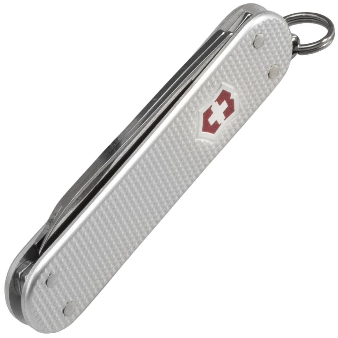 Victorinox Classic Alox Silver Schweizer Taschenmesser mit kompakter Größe und geringem Gewicht zum Mitnehmen von Schlüsseln. In silberner Farbe.